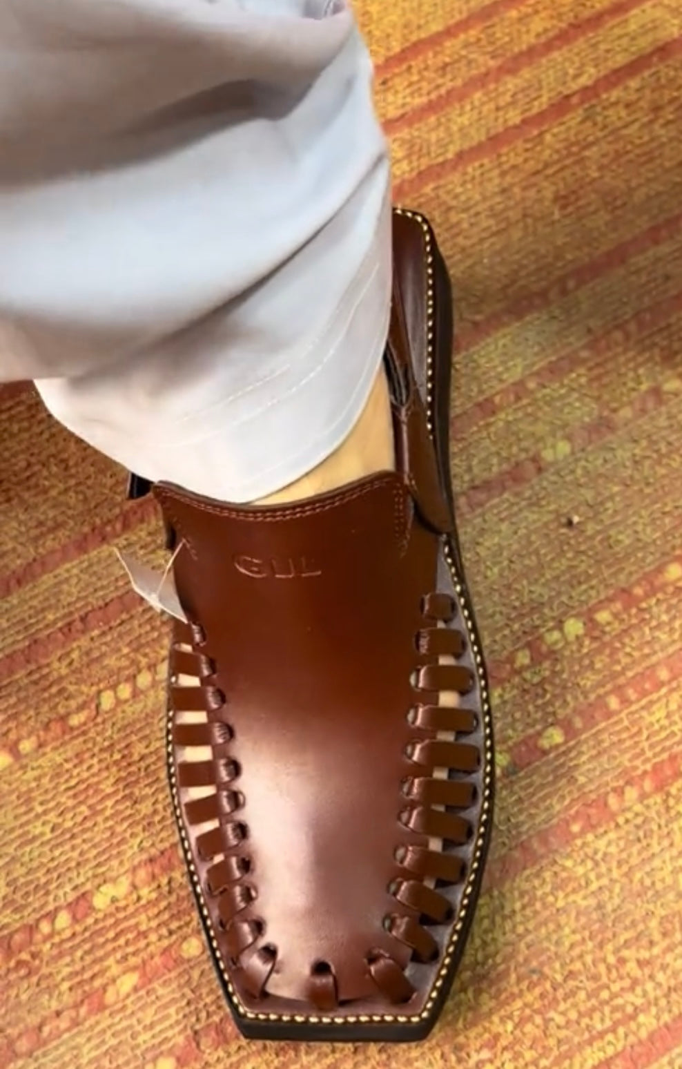 introducing latest design MARKHORE peshawar chappal which is made of full leather and handcrafted. its unique design having ventilated spaces in between leather give extra comfort specially for sugar patients.